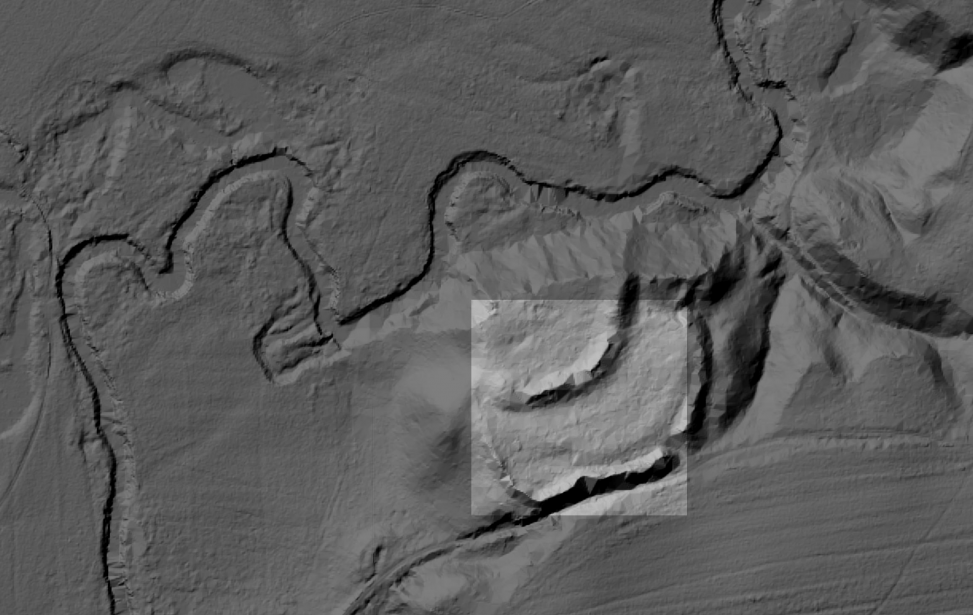 Grodzisko pruskie w Bogdanach (gm. Frombork), widok na układ przestrzenny i wały, LIDAR, oprac. Eryk Skolarski